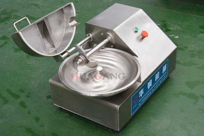 5L meat bowl cutter is the main machine for meat processing, meat bowl cutter is to use a knife to adjust the placement of the chopped meat or meat paste, you can put condiments, meat, water stir together. It have produced pot-speed bowl cutter machine, knife speed, chopping knife between the pot and turn to achieve the most