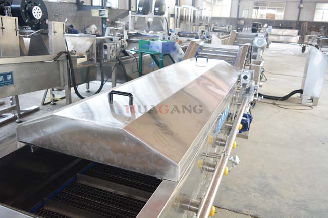 Industrial used packing bags pasteurizer line composed of sterilization line, cooling line and air drying line. Through the continuously running by the chain, driven by germicide into the groove continuous operation, suitable for pickles, pickled vegetables, low temperature meat products, fruit juice, jelly, yogurt beverage and all kinds of automatic continuous pasteurized, can also be used for blanching, pushes the processing of vegetables.