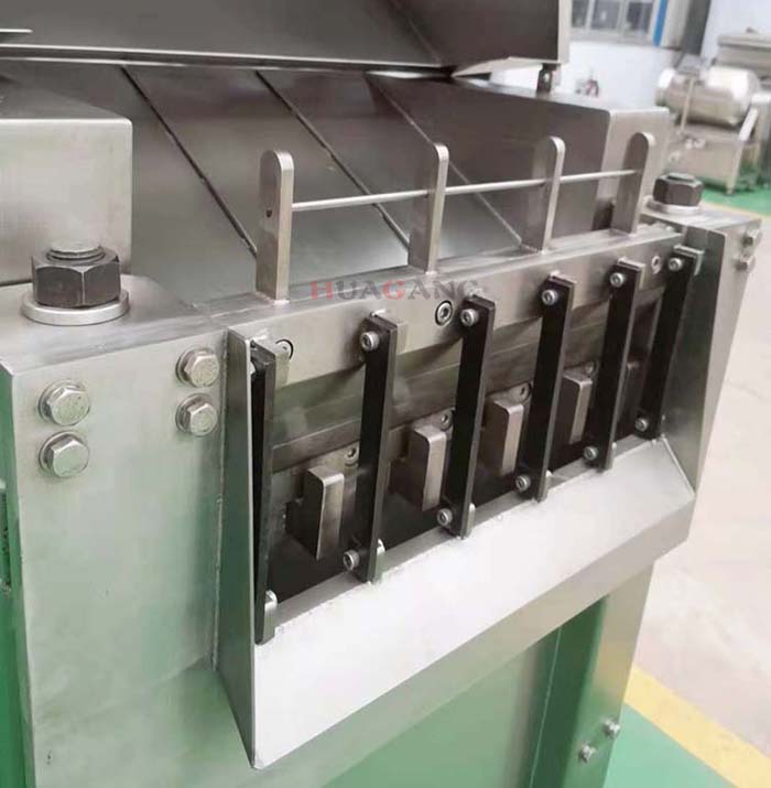 Frozen meat cutting machine is done by hydraulic power, the machine are made of high-quality stainless steel processing not rust, clean, accord with food hygiene requirements.